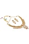 Gold Finish Pink & Green Stone Floral Pendant Necklace Set