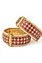 Featuring a pair of gold finish bangles studded with red kundan polki, set in mixed metal. Perfect choice for weddings, parties and for other Indian festivities.
