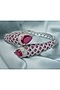 Featuring a silver finish floral kada studded with pink gemstones and white stones, set in mixed metal. Perfect choice for weddings, parties and for other Indian festivities.