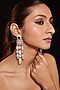 Featuring a pair of silver finish statement earrings studded with zircons and emerald synthetic stones, set in mixed metal. Add a touch of sparkle to your ensemble, perfect for wedding or engagement ceremony.