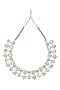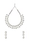 Featuring a silver finish floral necklace studded with zircons, set in mixed metal. It is paired with a matching pair of stud earrings. Add a touch of sparkle to your ensemble, perfect for wedding or sangeet ceremony.