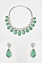 Featuring a white finish necklace studded with green teardrop stone, set in mixed metal. It is paired with a matching pair of earrings. Perfect for wedding celebrations, festive soirees or cultural gatherings adding a regal charm to every look.