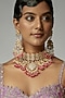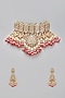 Featuring a gold finish choker necklace studded with kundan polki, set in mixed metal. It is paired with a matching pair of earrings. This necklace set is ideal for a festive occasion or wedding ceremony.