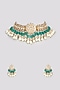 Featuring a gold finish choker necklace studded with kundan polki and green beads, set in mixed metal. It is paired with a matching pair of earrings. Perfect wear for festive or wedding ceremonies.