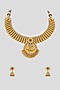 Featuring a gold finish temple necklace, set in mixed metal. It is paired with a matching pair of earrings. Perfect for festive or wedding ceremonies.