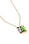Featuring a 18kt gold plated necklace studded with fern and aqua swarovski crystal, set in brass.