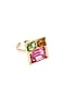 Featuring a 18kt gold plated ring studded with red swarovski crystal, set in brass.