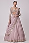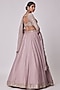Featuring an ash pink lehenga in organza base. It is paired with a georgette blouse having mirror embroidery and an organza dupatta. Accentuate this statement lehenga with heels and statement jewellery for your wedding, sangeet or engagement look.