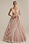 Vvani by Vani Vats presents an ash pink lehenga in organza base with pearl drop embroidery. It is paired with a georgette embroidered V-neck blouse and an organza dupatta. Style it with heritage jewellery, a clutch and embellished heels, Ideal for sangeet or grand wedding ceremonies.