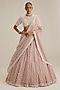 Ash Pink Organza Pearl Drop Embroidered Lehenga Set