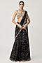 Featuring a black flared pant saree in georgette base with mirror embroidery. It is paired with an embroidered sleeveless blouse. Style it with diamond earrings, a clutch bag and nude heels. Perfect for festive celebrations like Diwali, Bhai Dooj, engagement ceremonies, receptions, or cocktail nights.