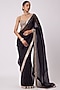 Featuring a black saree in organza base with hand embroidery. It is paired with a georgette blouse having hand cut mirror embroidery. Accentuate this statement lehenga with heels and statement jewellery for your wedding, sangeet or engagement look.
