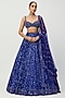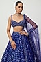 Vvani by vani vats features a mesmerizing Blue Lehenga Set that captivates with its elegance. The eye-catching lehenga is crafted in net with cutdana, crystal and sequins hand embroidery. It is paired with a georgette blouse having crystal embellishments and a net dupatta. Accessorize the designer lehenga set with statement earrings and heels for weddings or sangeet ceremonies.