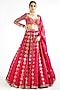 Crimson Red Satin Organza Mirror Embroidered Lehenga Set