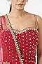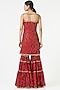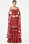 Featuring a crimson red kurta in georgette base with embellishments. It is paired with matching tiered sharara pants and a net dupatta.