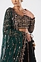 Featuring a dark green lehenga in velvet base with embroidery. It is paired with a matching blouse and a georgette dupatta.Accentuate this statement lehenga with a pair of heels and statement jewellery for your wedding/sangeet/engagement/trousseau look.