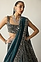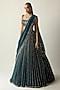 Dark Teal Organza Hand Embroidered Lehenga Set