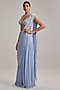 Dew Blue Georgette Pearl Tassels Draped Saree Set