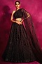 Featuring a wine lehenga in net base with sequins embroidery. It is paired with a matching one shoulder blouse and an attached veil. Accentuate this designer lehenga set with a pair of heels and polki jewellery for your wedding/sangeet/engagement/trousseau look.