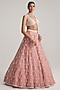 Vvani by Vani Vats presents a dusty rose lehenga in organza base with mirror and pearl tassels embroidery. It is paired with a georgette blouse having a v-neckline and an organza dupatta. Style it with heritage jewellery, ornate bangles and embellished heels, Ideal for pheras and grand wedding ceremonies.