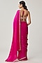 Fuchsia Pink Satin Mirror Embroidered Saree Set