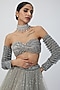 Grey Net Hand Embroidered Lehenga Set