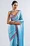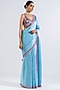 Featuring an ice blue saree in satin chiffon base with mirror work. It is paired with a matching georgette blouse having sequins embellishments.