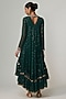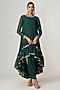 Featuring a jade green kurta in georgette base with sequins embroidery. It is paired with a crepe inner and dhoti pants. Accentuate with statement jewellery and heels for a festive occasion.