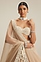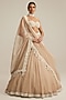 Vvani by Vani Vats presents a light beige lehenga in organza base with mirror and pearl embroidery. It is paired with a georgette embroidered blouse and a dupatta. Style it with heritage jewellery, ornate bangles and embellished heels, Ideal for pheras and grand wedding ceremonies.