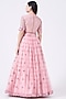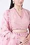 Featuring a light pink lehenga in georgette base with hand embroidery. It is paired with a matching blouse and an organza dupatta. Accentuate this statement lehenga with a pair of heels and statement jewellery for your wedding/sangeet/engagement/trousseau look.