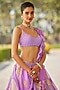Vvani by Vani Vats features a mesmerizing Mauve Lehenga Set that captivates with its elegance. The eye-catching lehenga is crafted in organza with floral applique hand embroidery. It is paired with a georgette sequin embellished blouse and an organza dupatta. Accessorize the designer lehenga set with statement earrings and heels for weddings or sangeet ceremonies, showcasing style and sophistication.