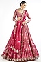 Featuring a fuchsia lehenga in georgette base with zari and hand cut mirror embellishments. It is paired with a matching georgette blouse and a satin organza dupatta. Accentuate this statement lehenga with a pair of heels and statement jewellery for your wedding/sangeet/engagement/trousseau look.