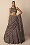 Metallic Grey Organza Linear Embroidered Lehenga Set
