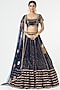 Featuring a midnight blue lehenga in georgette base with embellishments. It is paired with a matching blouse and a net dupatta. Accentuate this statement lehenga with a pair of heels and statement jewellery for your wedding/sangeet/engagement/trousseau look.
