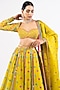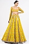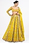 Featuring a mustard lehenga in georgette base with hand-cut mirror work. It is paired with a matching blouse having a sweetheart neckline and mirror work, including a satin organza dupatta. Accentuate this statement lehenga with a pair of heels and statement jewellery for your wedding/sangeet/engagement/trousseau look.