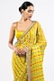 Featuring a moss green pre-draped saree in satin organza base with hand cut mirror embellishment. It is paired with a satin blouse. Accentuate it with statement jewellery or heels for weddings or a mehendi ceremony.