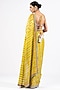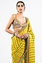 Featuring a moss green pre-draped saree in satin organza base with hand cut mirror embellishment. It is paired with a metallic georgette blouse having sequins work. Accentuate it with statement jewellery or heels for weddings or a mehendi ceremony.