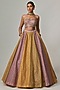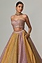Featuring a multi-colored lehenga in georgette base with gota embroidery. It is paired with a structured corset. Accentuate the designer lehenga with statement jewellery and heels for your wedding or engagement ceremony.