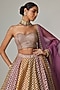 Featuring a multi-colored lehenga in georgette base with golden gota embroidery. It is paired with an embroidered georgette blouse and an organza dupatta. Accentuate the designer lehenga with statement jewellery and heels for your wedding or engagement ceremony.