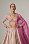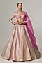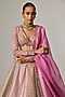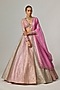 Featuring a multi-colored lehenga in georgette base with golden gota embroidery. It is paired with an embroidered georgette blouse and a dark blush pink organza dupatta. Accentuate the designer lehenga with statement jewellery and heels for your wedding or engagement ceremony.