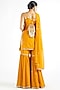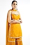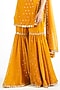 Featuring a mustard kurta in georgette base with hand cut mirror embroidery. It is paired with matching pants and an embroidered dupatta.