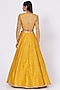 Featuring a mustard lehenga in net base with sequins and mirror hand embroidery. It is paired with a matching blouse in silk base and a net dupatta. Accentuate this designer lehenga set with a pair of heels and polki jewellery for your wedding/sangeet/engagement/trousseau look.
