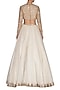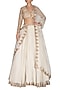 Featuring an off-white lehenga in organza and georgette base triangle mirror border. It is paired with a blouse having sequins, zari and moti heavy embroidery and a dupatta. Accentuate this designer lehenga set with a pair of heels and statement jewellery for your wedding/sangeet/engagement/trousseau look.