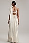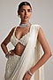 Vvani by Vani Vats presents an off-white draped saree in satin base with mirror and pearl embroidery. It is paired with a georgette embroidered blouse. Style it with minimal diamond jewellery, sleek heels, and a clutch. Suited for reception or cocktail events.