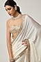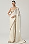 Off-White Satin Mirror Hand Embroidered Saree Set