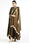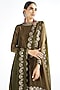 Featuring an olive green kurta in satin chiffon base with hand cut mirror embroidery. It is paired with matching pants and a satin organza embroidered scalloped dupatta.
