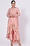 Featuring a peach kurta in georgette and crepe base with gota striped embroidery. It is paired with matching dhoti pants and a slip.