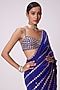Featuring a persian blue saree in georgette base with linear mirror hand embroidery. It is paired with a blouse having hand cut mirror embroidery. Accentuate with statement jewellery and heels for festive occasions or wedding ceremonies.