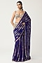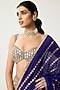 Featuring a persian blue saree in georgette base with mirror hand embroidery in linear pattern. It is paired with an embroidered sleeveless blouse. Style it with diamond earrings, a clutch bag and nude heels. Perfect for festive celebrations like Diwali, Bhai Dooj, engagement ceremonies, receptions, or cocktail nights.