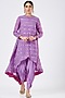 Featuring a purple kurta in georgette base with embroidery. It is paired with a matching dhoti in crepe base and an inner.